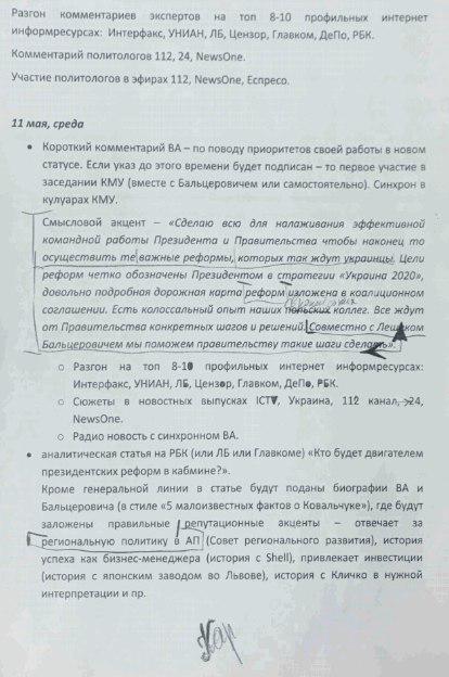 У документі навіть були прописані готові тези для таких коментарів, де Ковальчука показували як реформатора, який посилить роботу уряду.