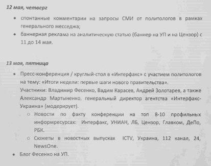 «Документи є уривками з неофіційного медіа-плану адміністрації та стосуються 2015-2016 років. З них випливає, що президентська команда замовляла засобам масової інформації, що писати та яких політологів цитувати» – йдеться у повідомленні.
