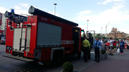 До ТРЦ під’їхала пожежна машина.