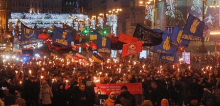 1 січня центром Києва пройшов кількатисячний марш до дня народження Степана Бандери.