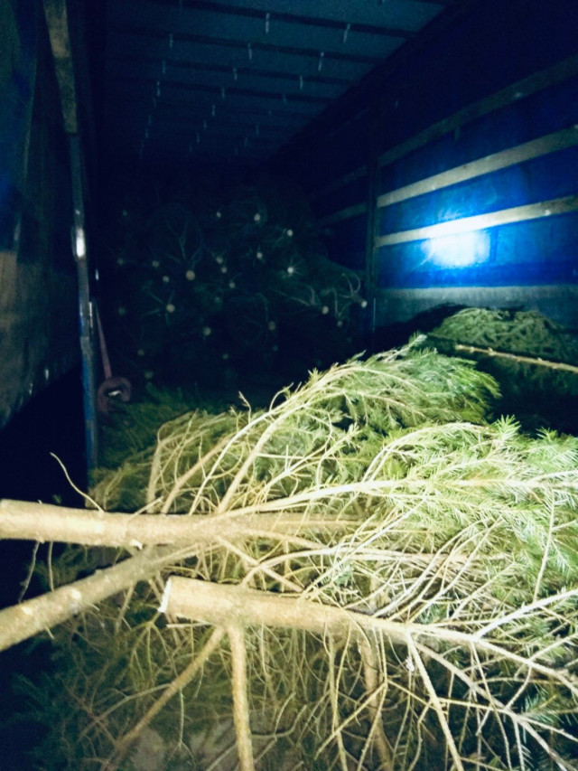У прикордонному селі на Волині затримали вантажівку з ялинками та соснами