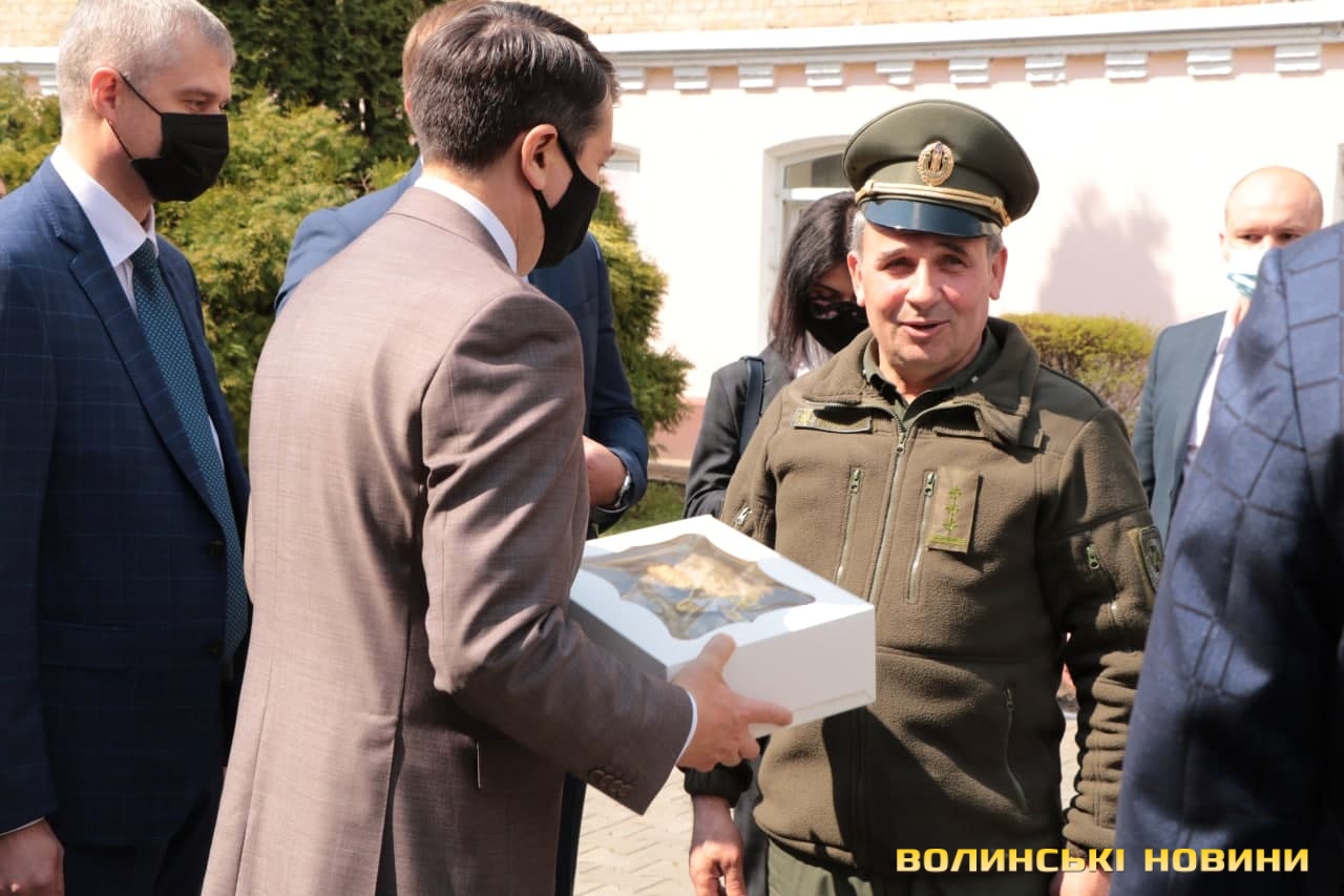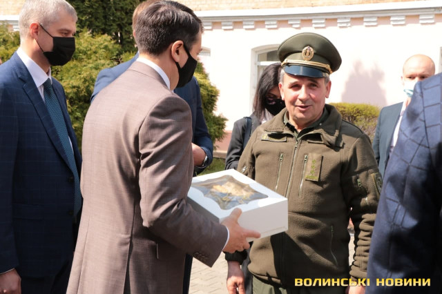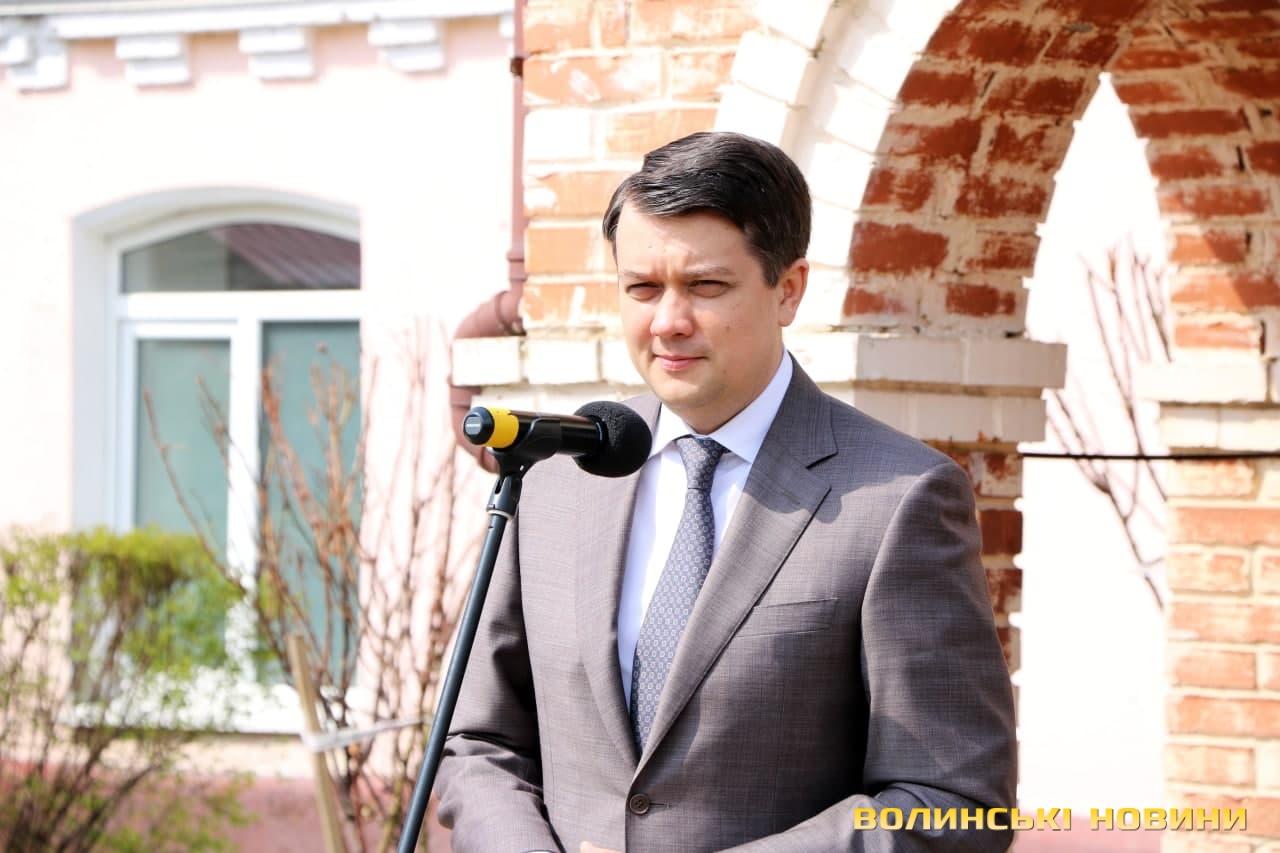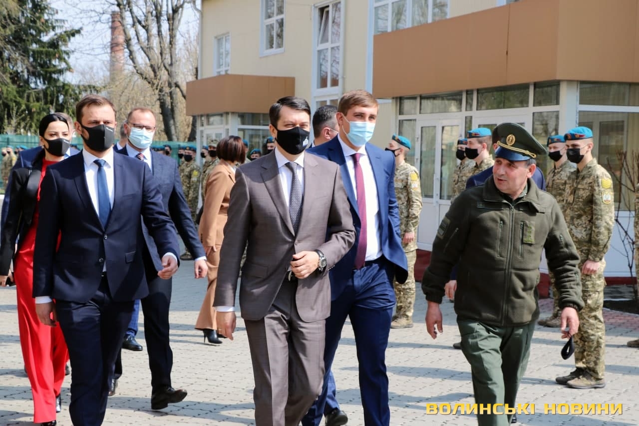 Нагадаємо, 21 квітня Дмитро Разумков завітав на Волинь, розпочавши свій візит з Волинської обласної ради та взявши участь в роботі сесії. А згодом разом із керівником облради Григорієм Недопадом та міським головою Луцька Ігорем Поліщуком високопосадовець вирушив до Волинського обласного перинатального центру, потім – до Волинського військового ліцею, що знаходиться на вулиці Стрілецькій, 6 у Луцьку.Під час візиту голови Верховної Ради України до навчального закладу були присутні і волинські нардепи Вячеслав Рубльов та Ірина Констанкевич.