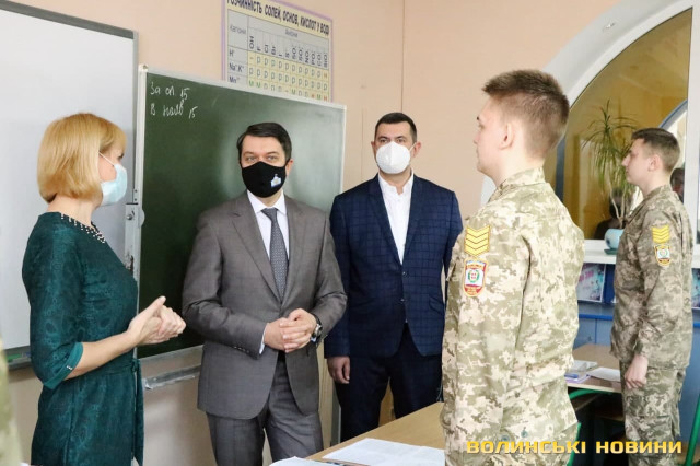 Голова Верховної Ради України Дмитро Разумков, перебуваючи із робочим візитом у Луцьку, відвідав Волинський обласний ліцей з посиленою військово-фізичною підготовкою імені Героїв Небесної Сотні.