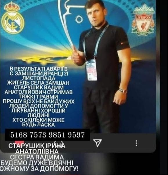 Номер карти Приватбанку, на яку можна переказати кошти для лікування постраждалого в ДТП Старушика Вадима: