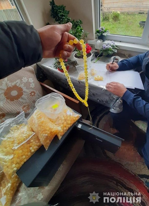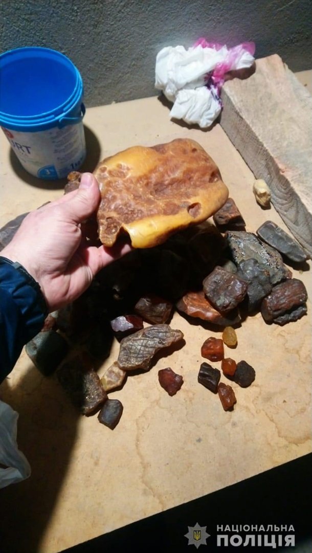 «За місцем проживання шести осіб, причетних до незаконного зберігання та переробки бурштину, правоохоронці виявили понад 100 кілограмів бурштину-сирцю різної фракції, обладнання для його обробки, а також готові вироби з сонячного каменю», – йдеться в повідомленні.