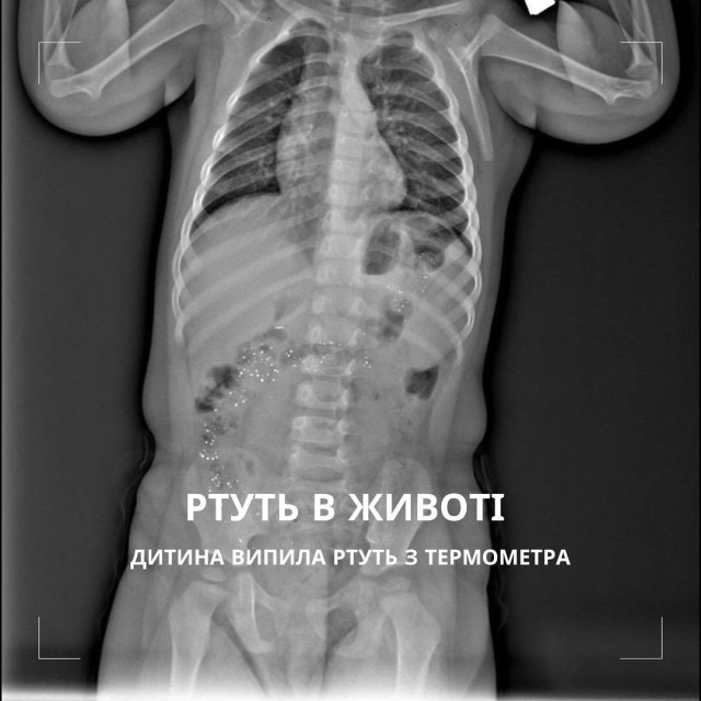 «На щастя, дитина була активною, без скарг. Стан задовільний, слизова рота неушкоджена. Проведена рентгенографія показала численні дрібні рентгенконтрастні тіні в проєкції товстої кишки – типова картина для елементарної (металевої) ртуті», – йдеться у повідомленні.