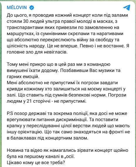 Сам MÉLOVIN також прокоментував інцидент.Читати ще: Melovin оголосив про завершення кар'єри