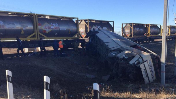 Відомо, що аварія трапилася на нерегульованому переїзді в селищі Озинки недалеко від кордону з Казахстаном. Усі пасажири автобуса - жителі Казахстану, які їхали в Росію.
