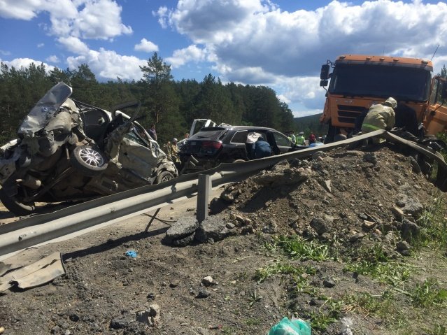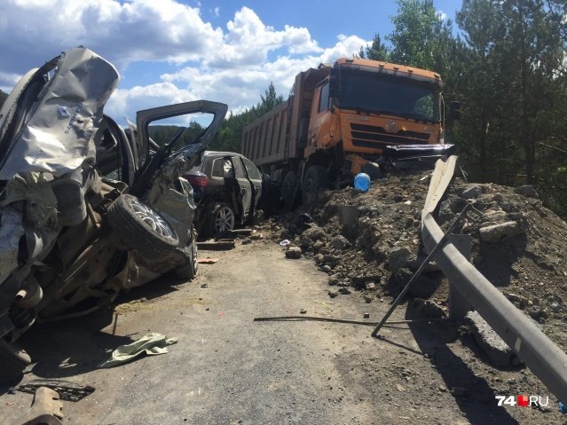 У Черлябінській області Росії 16 червня самоскид на повній швидкості протаранив п’ять автомобілів. У результаті аварії загинуло двоє людей, ще семеро постраждало.
