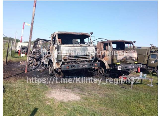 Telegram-канал InformNapalm повідомляє, посилаючись на слова місцевих жителів, що згорів парк із великою кількістю військової техніки, яку доставили з України для ремонту.Також повідомляється, що на місці події не знайшли уламків, які б могли залишитися від мінометного обстрілу з боку України. До того ж не виявлено факту обстрілу з українського БПЛА.
