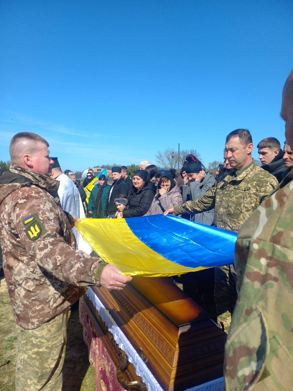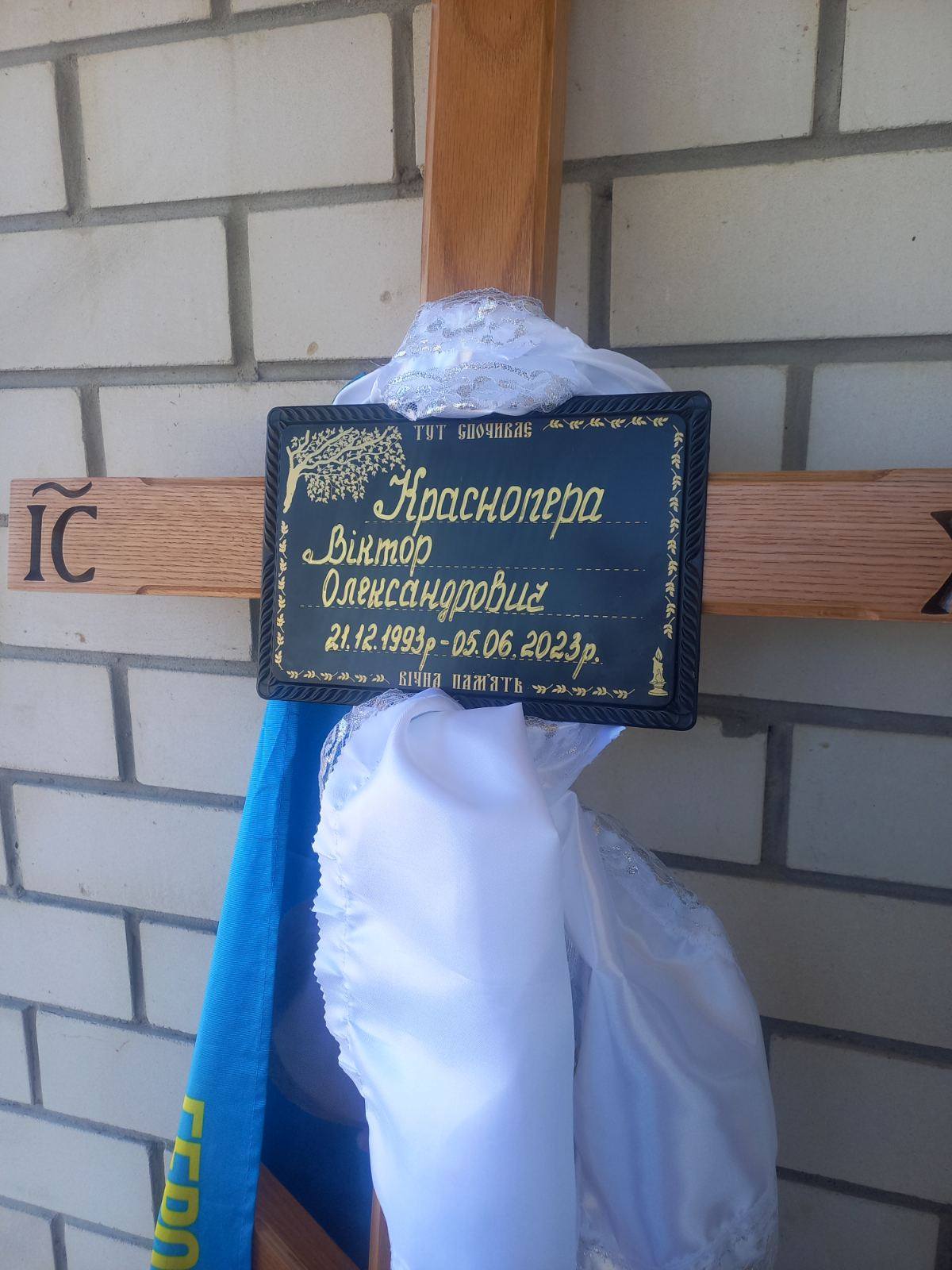 Поховали загиблого Віктора Красноперу з усіма військовими почестями під залпи почесної варти та Державний Гімн України на кладовищі рідного села.
