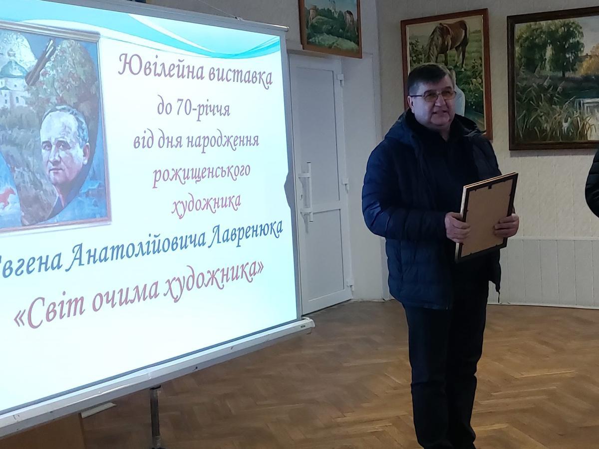 28 січня у Центрі культурних послуг Рожищенської міської ради презентували виставку картин рожищенського художника Євгена Лавренюка «Світ очима художника», приурочену сімдесятирічному ювілею митця.
