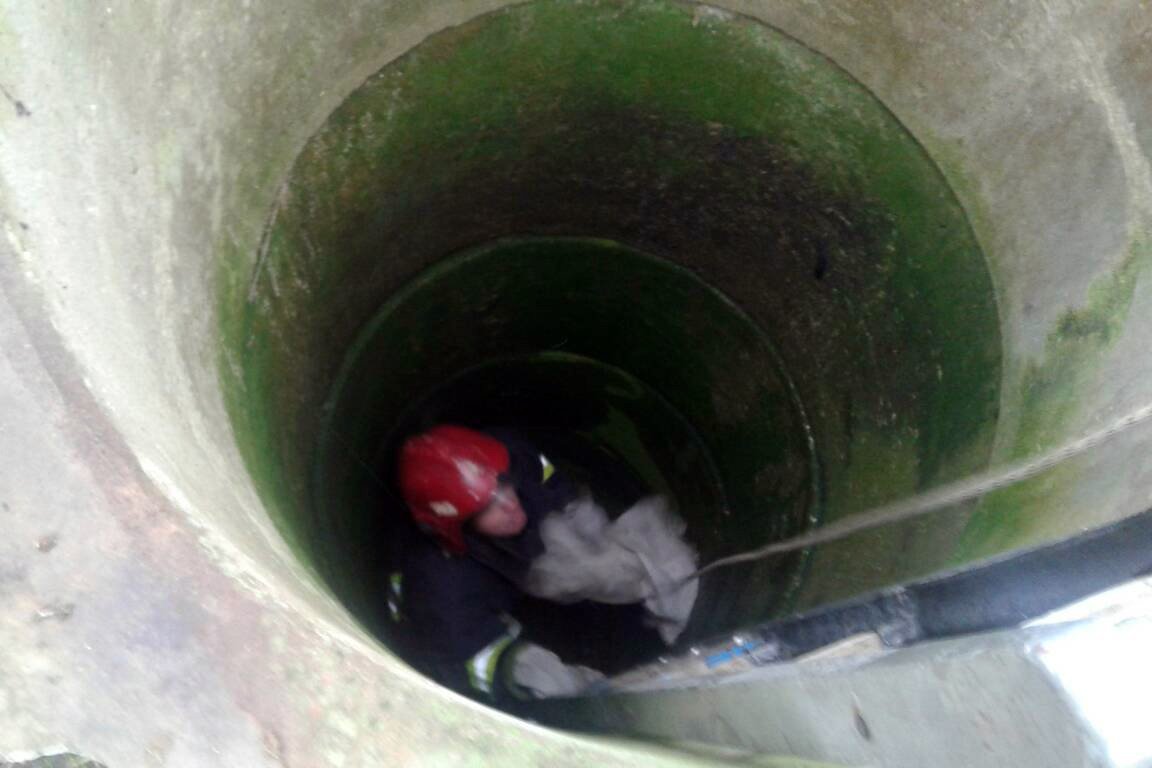 Чоловік пробував самотужки дістати тварину із криниці, спускаючи туди на мотузці відро, ящик, але його старання не увінчалися успіхом.