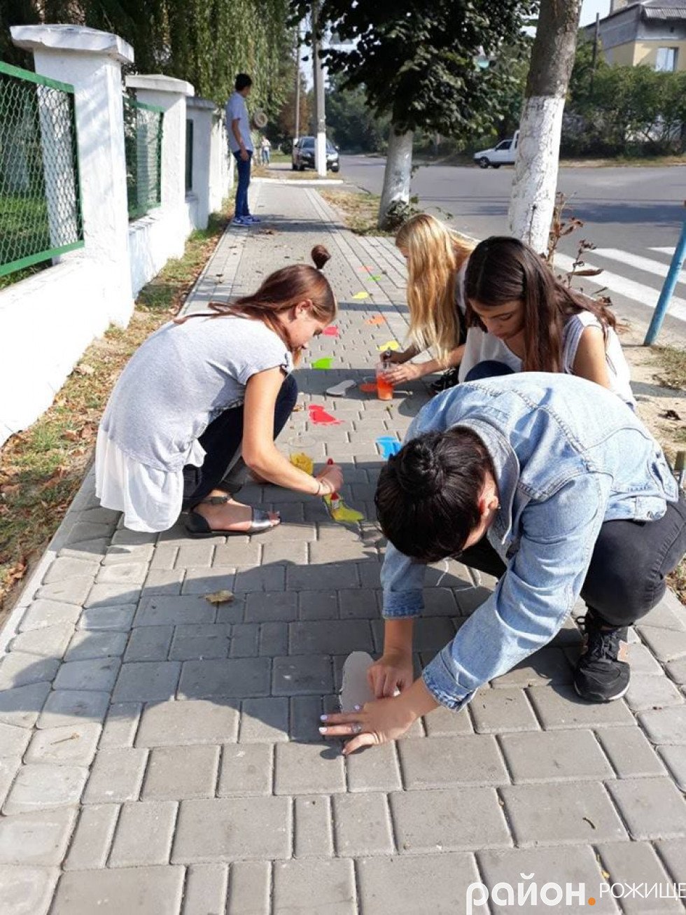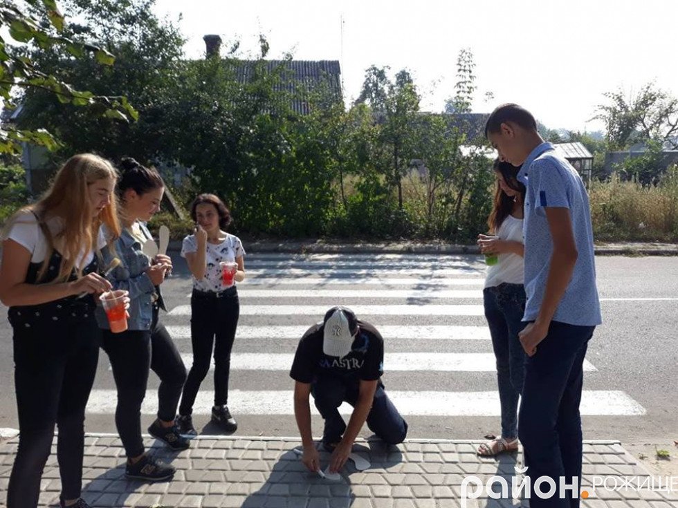 «Безпечну доріжку до школи» намалювали учасники учнівського комітету школи. Різнокольорові ступні ведуть від початку пішохідного переходу аж до дверей школи. Допомагав школярам здійснити задум керівник гуртків Рожищенського БДТ, художник Віталій Шевченко.
