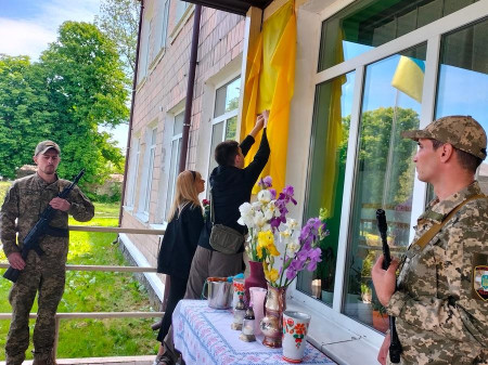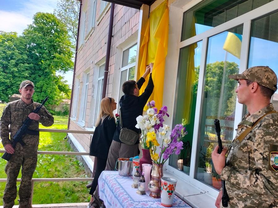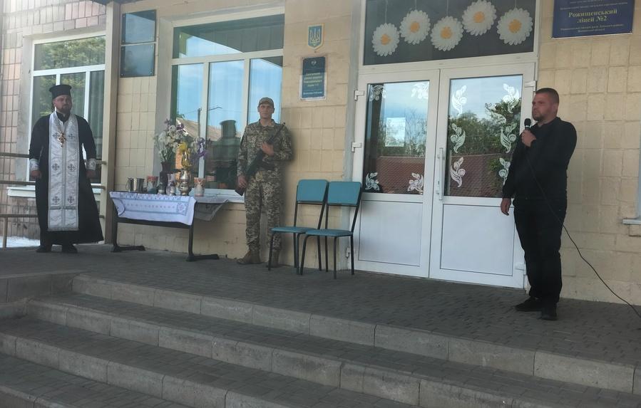 Вшанувати Героїв російсько-української війни прийшли рідні та друзі, представники влади, військові, духовенство, вчителі та учні школи.
