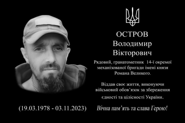 Володимир Остров боронив Україну з 2016 року - чоловік брав безпосередню участь в АТО/ООС на Луганщині та Донеччині й перебував на службі до 2019 року.