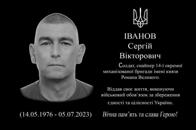 3 листопада 2023 року Володимир загинув внаслідок ворожого обстрілу під час виконання бойового завдання поблизу села Першотравневе на Харківщині у віці 45 років.Старший солдат 14-ої окремої механізованої бригади Сергій Вікторович Іванов на позивний Рибачок, 1976 року народження, захищав Ізюм, де був вперше поранений. Недолікувавшись, покинув госпіталь Краматорська, аби приєднатися до побратимів, яких передислокували у Попасне на Дніпропетровщині. І знову бої, знову важкі протистояння з ворогом.