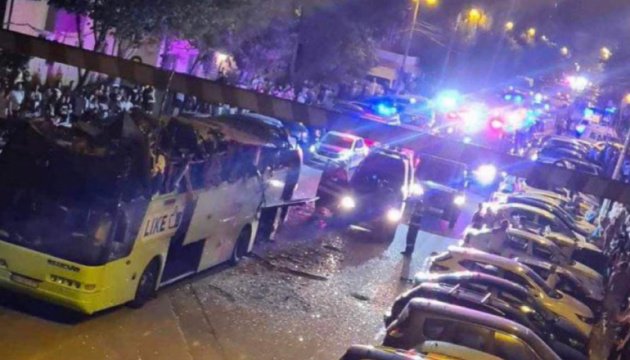 Видання повідомляє, що в автобусі перебувало близько 40 пасажирів з України. Транспортний засіб зачепив обмежувач висоти.