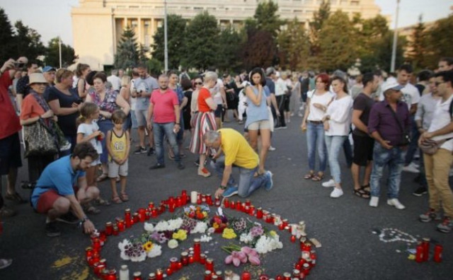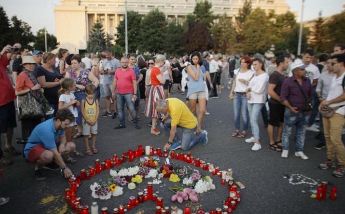 Викрикуючи антиурядові гасла і несучи румунські прапори, учасники акції пройшли від палацу Вікторії, штаб-квартири уряду, до площі Революції, де запалили свічки біля будівлі МВС.