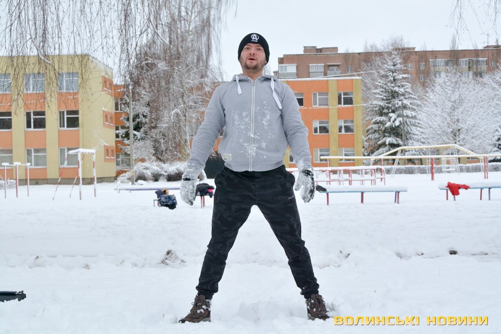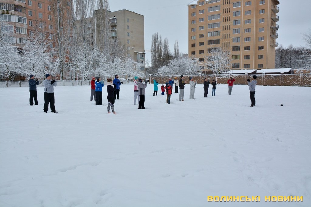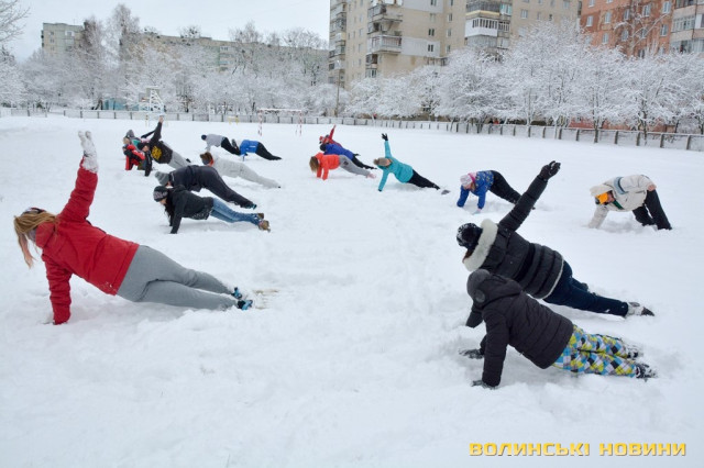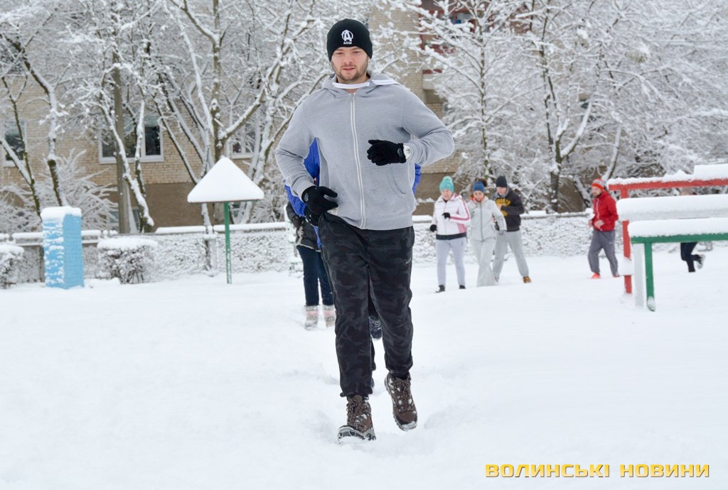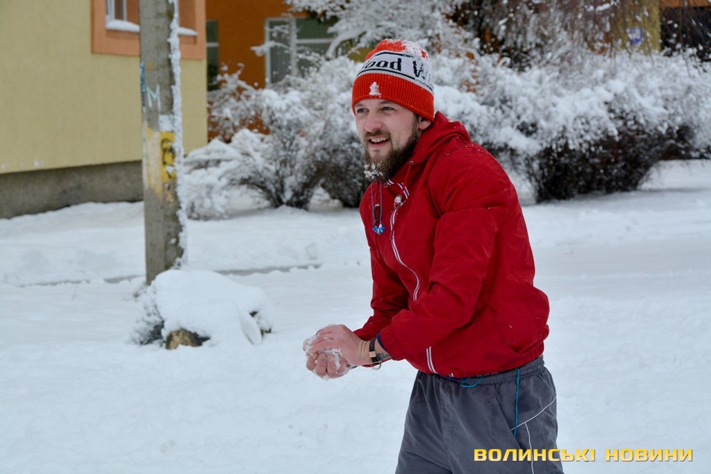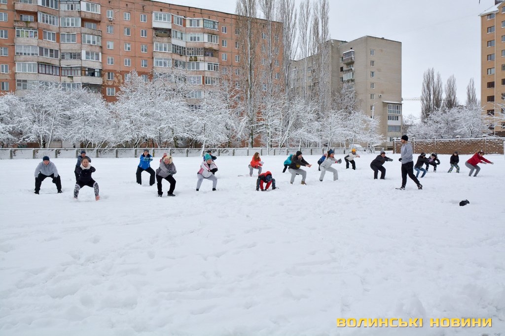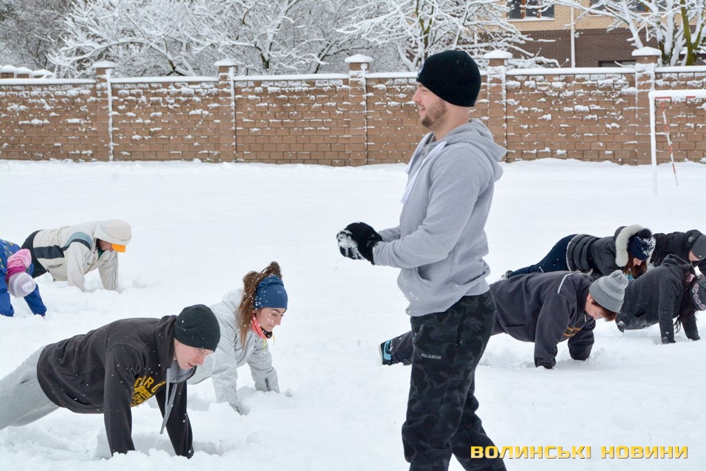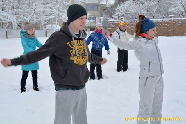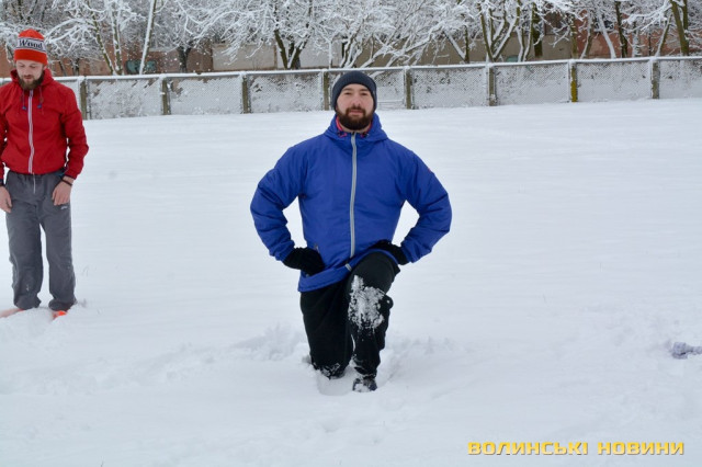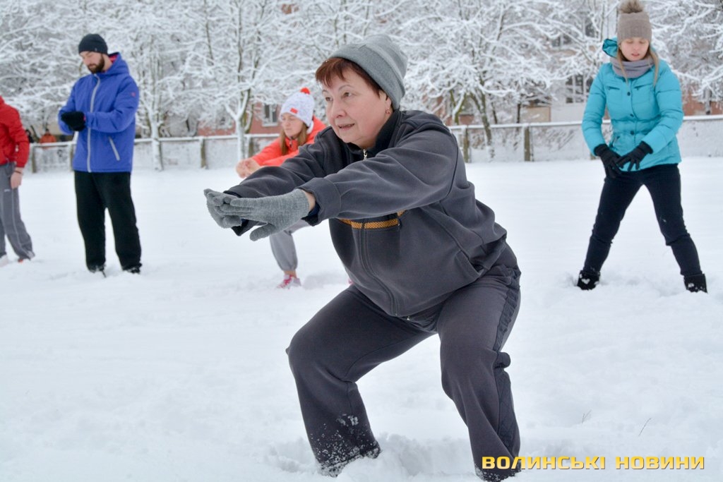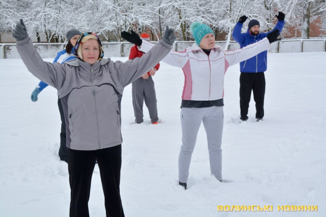 Рецепт гарного дня – в здоровому тілі і дусі: берете рукавиці, йдете на ранкову зарядку до Олега Хом'яка, бігаєте, відтискаєтеся, розтягуєтеся і закидаєте тренера сніжки. Саме так розпочався недільний ранок 4 лютого для двох десятків лучан.