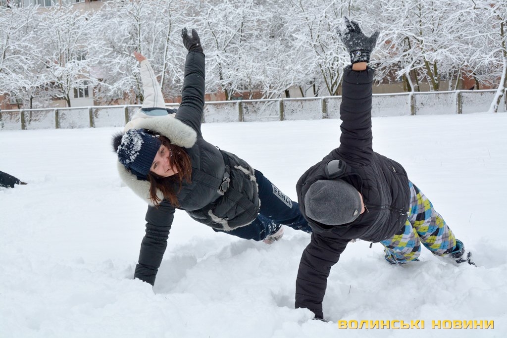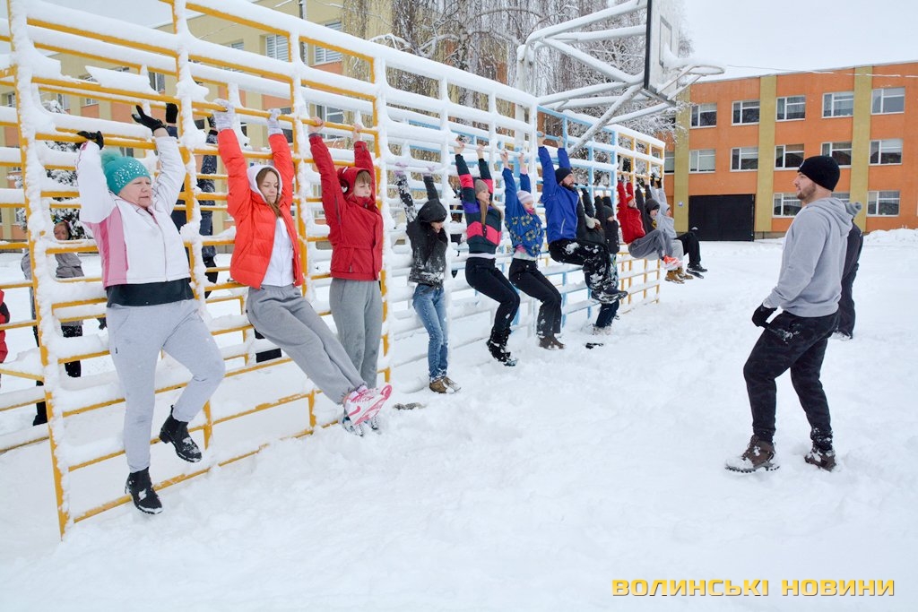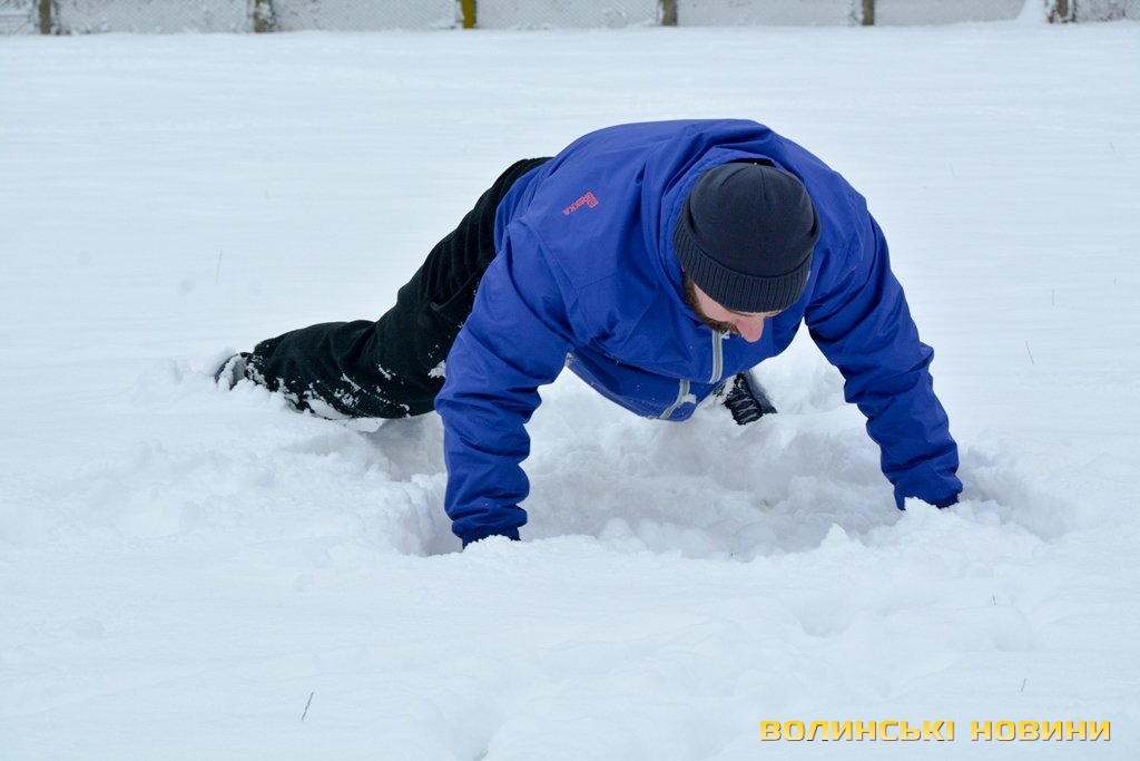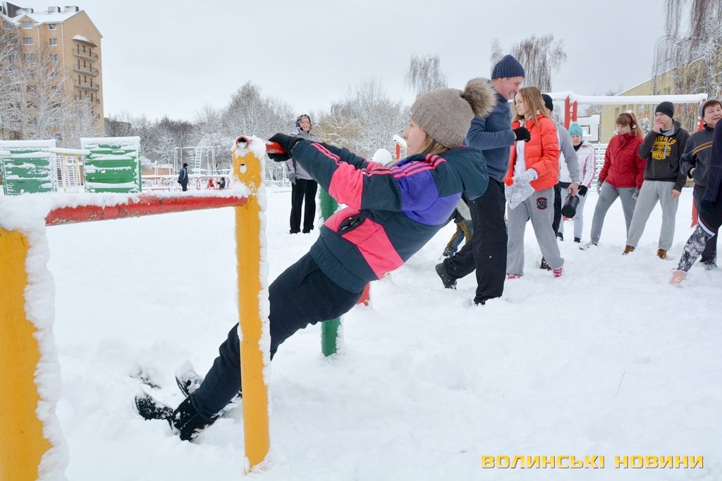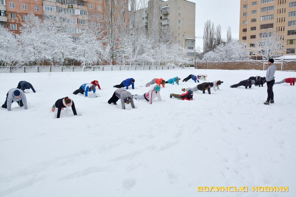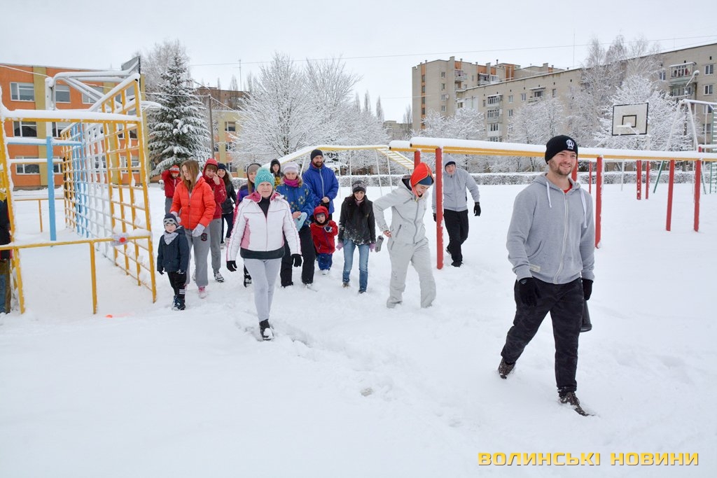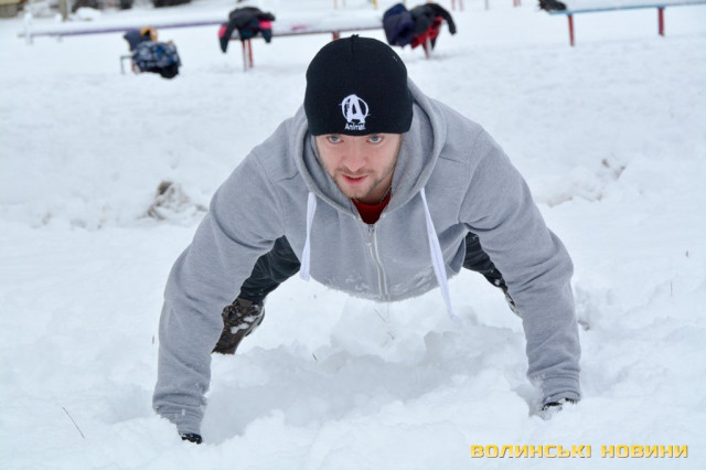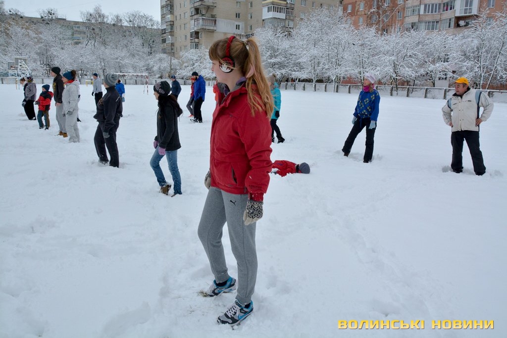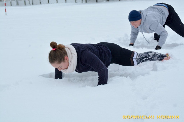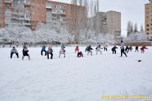 Рецепт гарного дня – в здоровому тілі і дусі: берете рукавиці, йдете на ранкову зарядку до Олега Хом'яка, бігаєте, відтискаєтеся, розтягуєтеся і закидаєте тренера сніжки. Саме так розпочався недільний ранок 4 лютого для двох десятків лучан.
