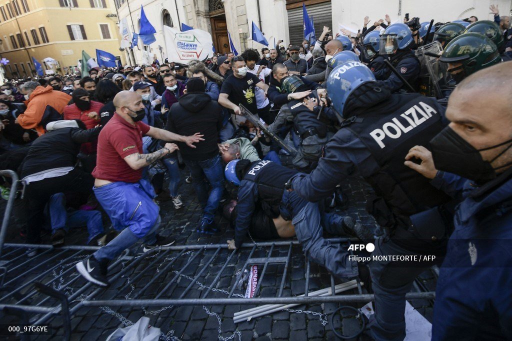 У столиці Італії під час протестів проти коронавірусних обмежень 6 квітня відбулися сутички мітингувальників і поліції. Щонайменше двоє поліцейських отримали поранення.