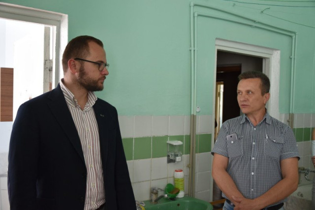 Розпочався огляд із садочку №5 “Пізнайко”. Заклад має проблему із підйомом ґрунтових вод, а так як побудований був на стрічковому фундаменті, то відсутня можливість організувати повноцінне відкачування – потрібно забирати воду ще на підходах до будівлі. За бюджетні кошти тут проводиться ремонт систем тепло- водопостачання та каналізації. За 110 тис грн замінять частину трубопроводу, що вийшов з експлуатації, радіатори, крани, засуви.