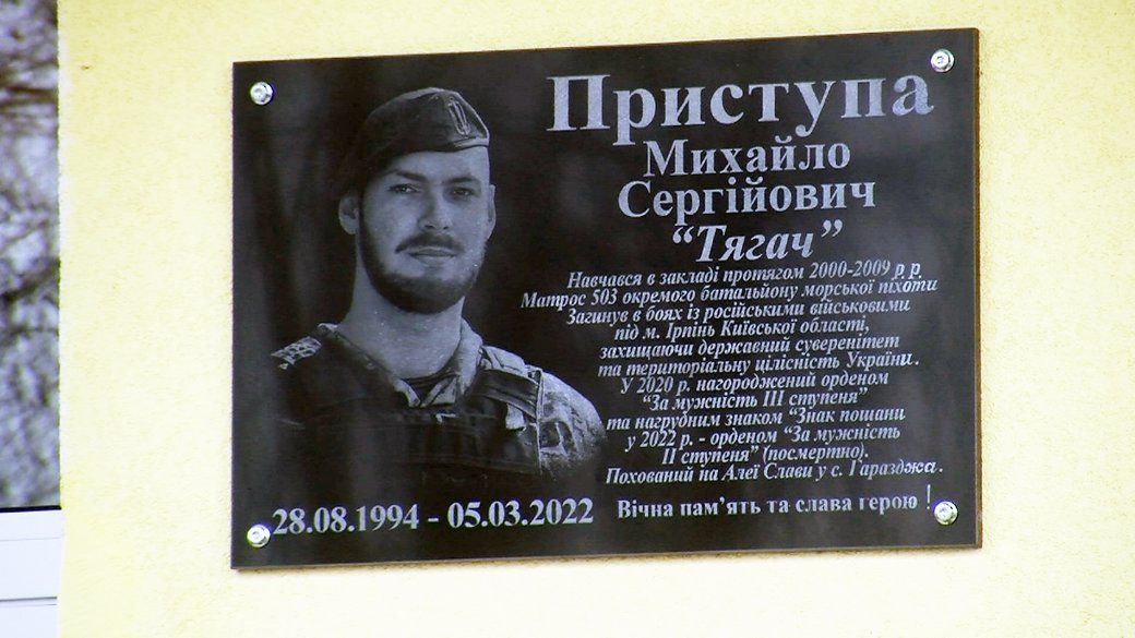 Розмістили дошку пошани на будівлі школи, у якій він навчався Михайло.
