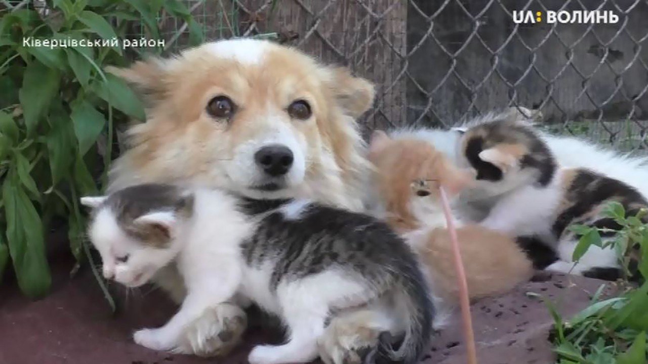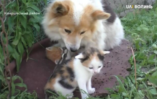 На одному з обійсть у селі Озеро Ківерцівського району собака вигодовує кошенят. Собака на кличку Білка відібрала у кицьки дитинчат, бо вважає їх за своїх. Про це Суспільному розповіла господарка тварин Євгенія Андрійчук. Каже, Білка була вагітна, але не народила. Два тижні тому відібрала кошенят у кицьки.