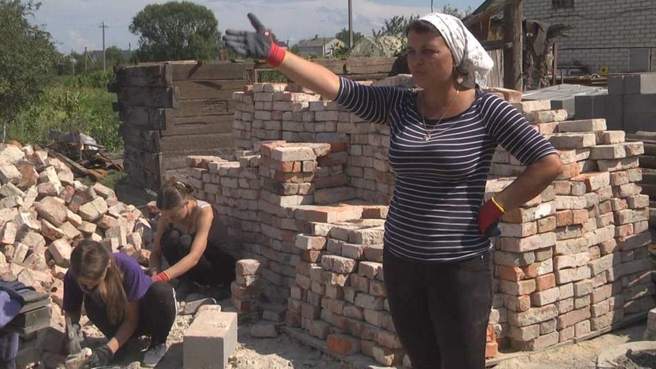 Допомагає відновити житло людям бригада волонтерів. Чоловіки мають досвід роботи на будівництві і не змогли бути осторонь чужого горя, каже Григорій Лукашук. Додає: "Наша праця безплатна, бо це біда людям, переживання їм і самі переживаємо. Кладка, штукатурка – там ще багато роботи".Будівельник Григорій Лукашук розповідає, що допомагають відновлювати житло безплатно