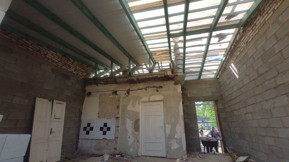 Гроші на відновлення зруйнованого будинку збирала місцева громадська організація. Зі слів голови, на державну підтримку за зруйноване житло вирішили не чекати, тому почали роботи власними силами.