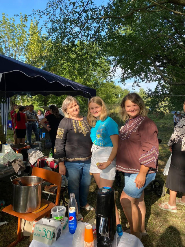 Дарина Остапчук разом із мамою Ольгою для ярмарку приготували різноманітні солодощі та прохолодні напої. Дівчинка розповідає, що її тато нині захищає кордони нашої держави. Тому робили усе з великою вірою у перемогу та в усіх захисників нашої країни.Загалом у ЗСУ зараз служить вісім жителів села Мирків, розповів староста громади Віктор Коритко.
