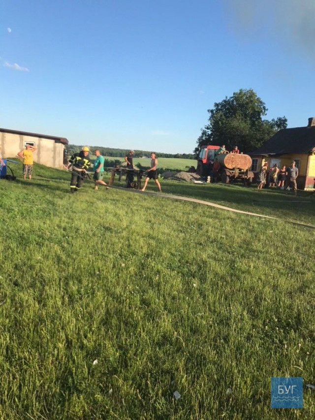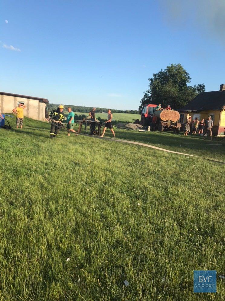 Як повідомили БУГу очевидці, загорівся хлів, у якому зберігали сіно.