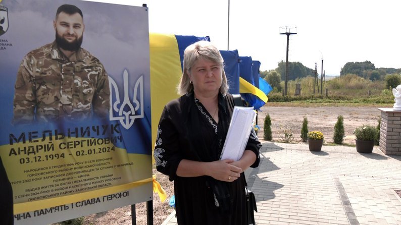 Батько полеглого бійця Сергій Мельничук розповів, що син загинув на Запорізькому напрямку, підірвавшись на автівці на мінному полі. Витягнути Андрія з місця загибелі побратимам вдалося лише наступного дня.«Вони (російські військові, – ред.) почали інтенсивно їх накривати. Андрієву машину витягнули і він почав здавати назад, виглянув з БМП, і в той момент прилетів осколок. Тіло спустилося, хлопці почали його доставати, але нога заклякла, включилася задня передача і машина пішла на мінне поле», – сказав волинянин.Алея слави із портретами загиблих героїв розташована у центрі селища Мар’янівка. Тут розмістили 33 стенди з героями, які проживали у Мар’янівській тергромаді.На відкриття Алеї прийшли рідні, друзі, побратими і жителі громади.