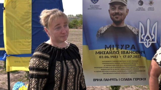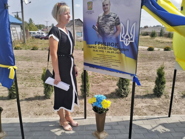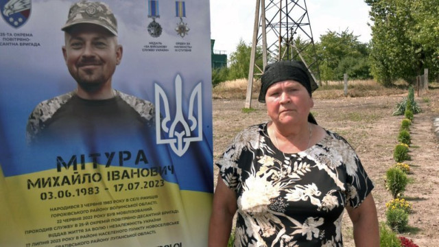 До портрета загиблого військовослужбовця Михайла Мітури прийшли дружина і мати. Вони розповіли, що Михайло був мобілізований 2022 року, служив на посаді помічника гранатометника у 25 окремій повітряно-десантній бригаді. Загинув 17 липня 2023 року в районі населеного пункту Новоселівське Луганської області.«Він дуже був добрий. Він всіх любив. Він старався всім допомогти. Він ділився найкращим. Йому дівчинка у школі дала три польських пряники, а він біг додому, аби поділитися із батьками», – сказала мама полеглого Людмила.Дружина загиблого військового Світлана Мітура розповіла, що загинув воїн у результаті прямого влучання снаряда.