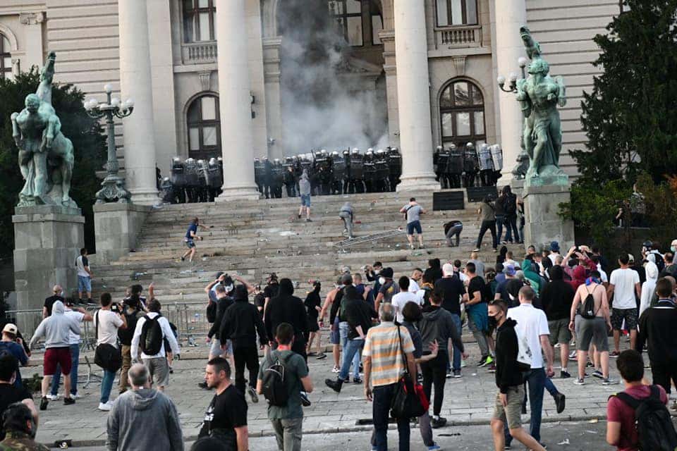 Під час заворушень у столиці Сербії Белграді 11 липня поліція затримала 71 людину, зокрема іноземців. 14 поліцейських отримали ушкодження унаслідок сутичок.