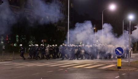 Поліція у Валєво застосувала світлошумові гранати та сльозогінний газ проти протестувальників після того, як невелика група людей у масках напала на порожні приміщення СПС та підпалила їх.
