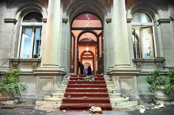 Thousands of Serbs gathered in front of City Hall in Belgrade last night. Some tried to storm the building.