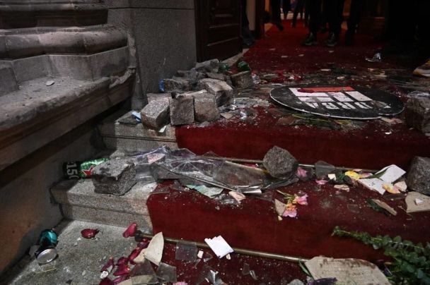 «Люди вийшли на вулиці, вимагаючи скасувати результати парламентських та місцевих виборів, що відбулися тиждень тому. Поліція застосувала щодо протестувальників перцеві балончики. Це сталося після того, як люди спробували прорватися до столичної ратуші, де розташована місцева виборча комісія. У будівлі розбиті вікна», – сказано в повідомленні.Поліція відтіснила протестувальників від ратуші. У ЗМІ вже з’являються кадри розгонів людей, також повідомляється про затримання. На протесті у Белграді затримали 35 людей. Повідомляється про трьох поранених правоохоронців.