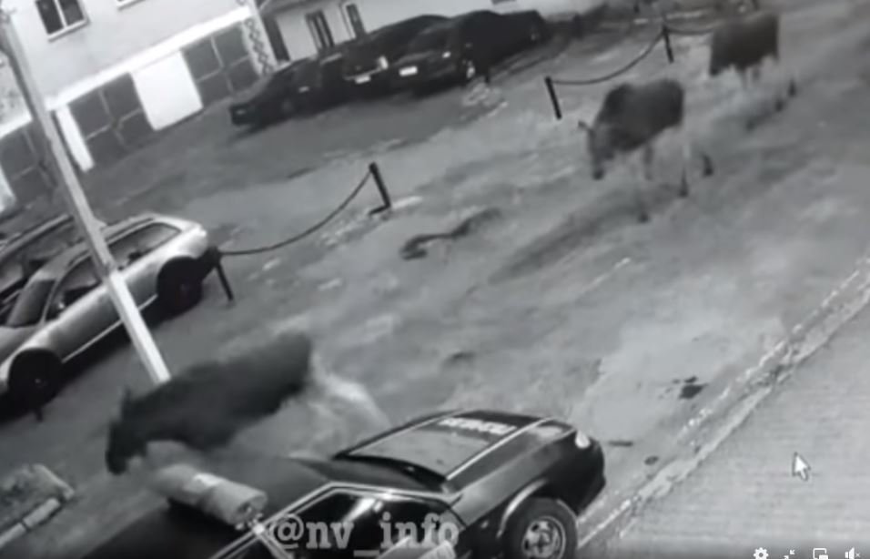 На записі видно, як три тварини спокійно розгулюють вулицями міста.