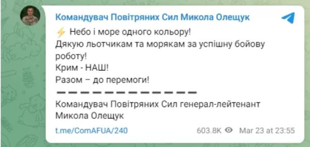 У Севастополі ввечері лунали вибухи. У Повітряних силах подякували льотчикам і морякам