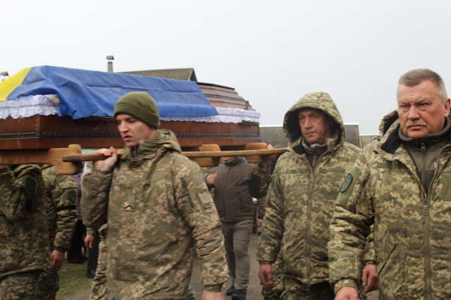 Громада на колінах зустріла захисника України, який повернувся додому на щиті.