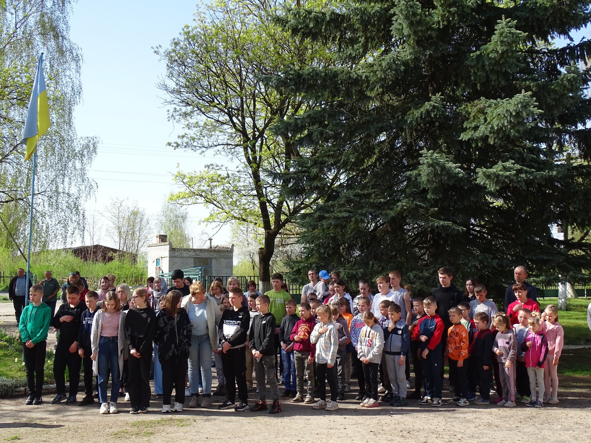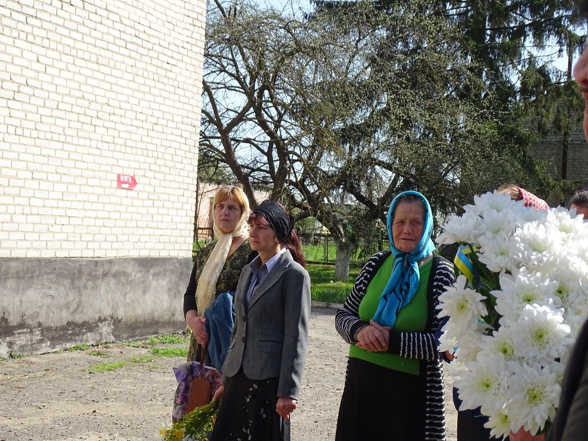 Участь у відкритті меморіальної дошки взяли мама загиблого захисника, педагоги та учні, земляки, староста, представники місцевої влади.