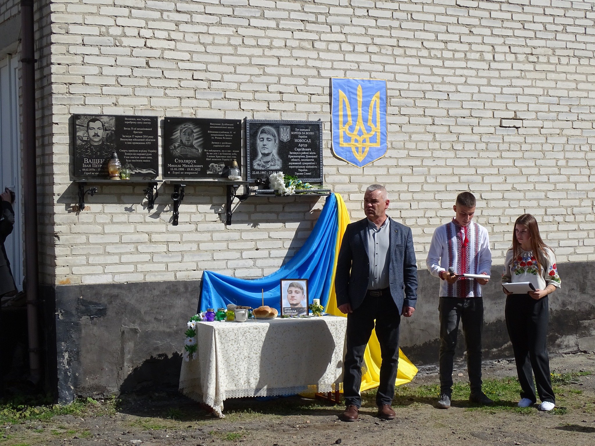 У селі Дуліби на честь загиблого воїна Артура Новосада відкрили меморіальну дошку. Встановили її на будівлі школи, де навчався захисник.