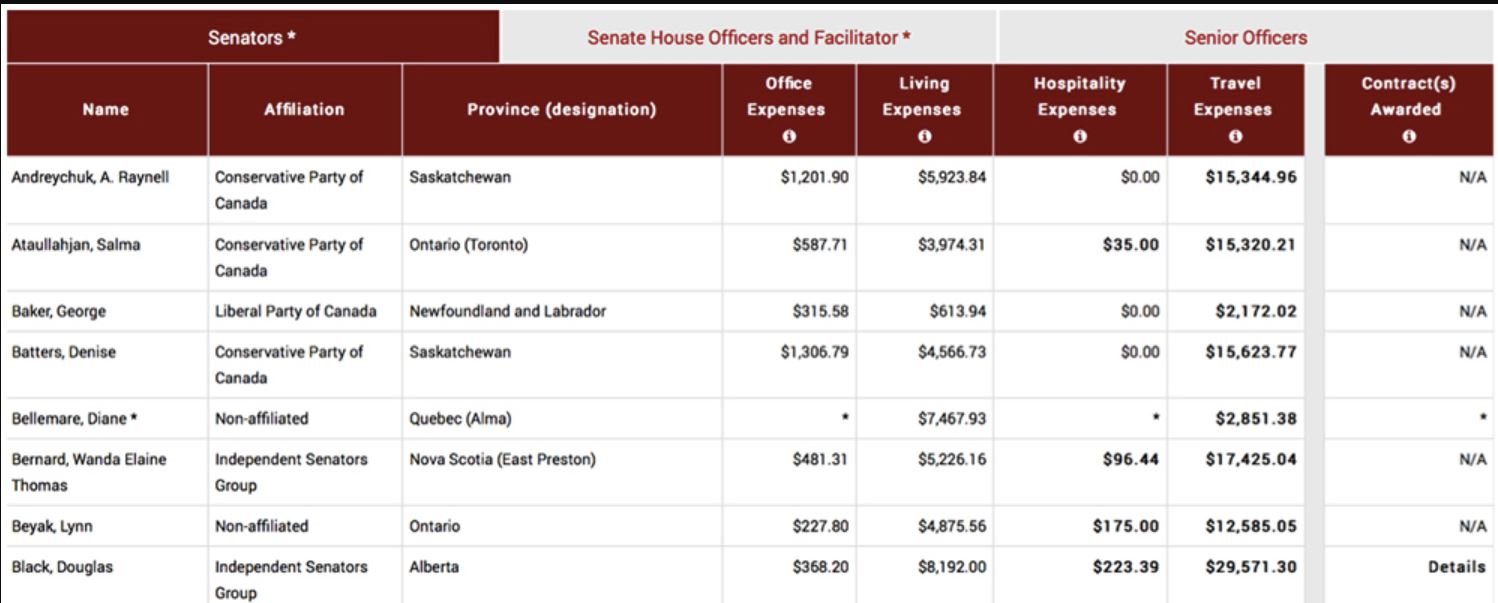 Детальна інформація про витрати членів Палати громад і сенаторів публікується на сайті парламенту Канади.