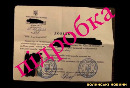 Фальшиву довідку з неіснуючого луцького військкомату для виїзду за кордон продають у соцмережах