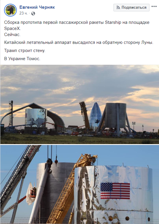 "Підкажіть там в АП, що саме час запускати чутки про чудесні зцілення", - пише журналіст В'ячеслав Чечіло, коментуючи красномовне фото, на якому глава світської держави характерним жестом чи не благословляє групу жінок в хустках."Коли тобі в Москві сказали розпіарити нову церкву для подальшого об'єднання з УПЦ МП, а ти неправильно зрозумів шефа", - сміється політичний аналітик Дмитро Корнійчук."Збірка прототипу першої пасажирської ракети Starship на майданчику SpaceX. Зараз. Китайський літальний апарат висадився на зворотний бік Місяця. Трамп будує стіну. В Україні Томос", - зазначає підприємець Євген Черняк."Зі святом, друзі! Хто сьогодні на концерті Петра Томасоносного?" - цікавиться журналіст Олеся Медведєва."Не пропустіть, гастролі в Україні вже в січні! Томос Андерс і Петер хворий", - сміється політтехнолог Ігор Тенетко.