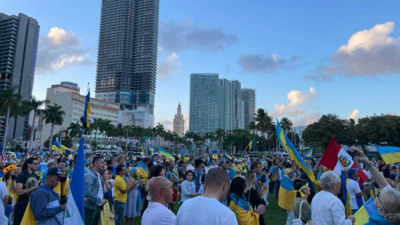 У Флориді синьо-жовті прапори волонтери роздавали всім охочим, а в Маямі підсвітили будівлі у кольори української символіки.