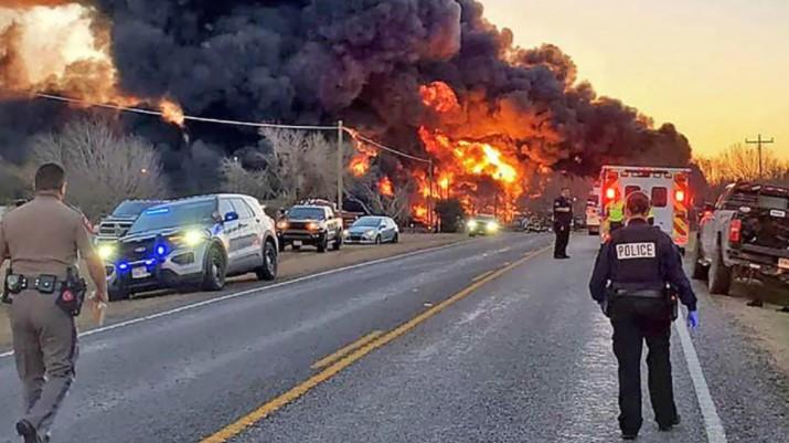 У США після зіткнення з вантажівкою вибухнув потяг з вугіллям та бензином. Відео