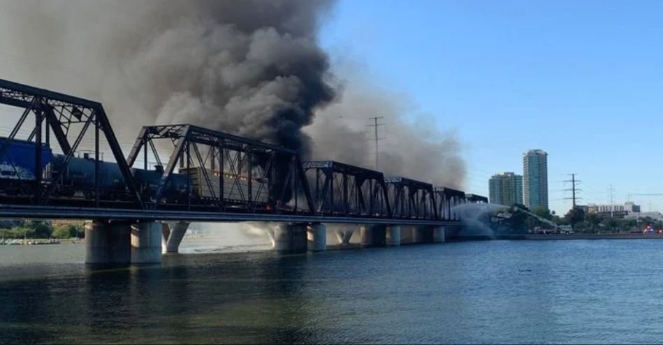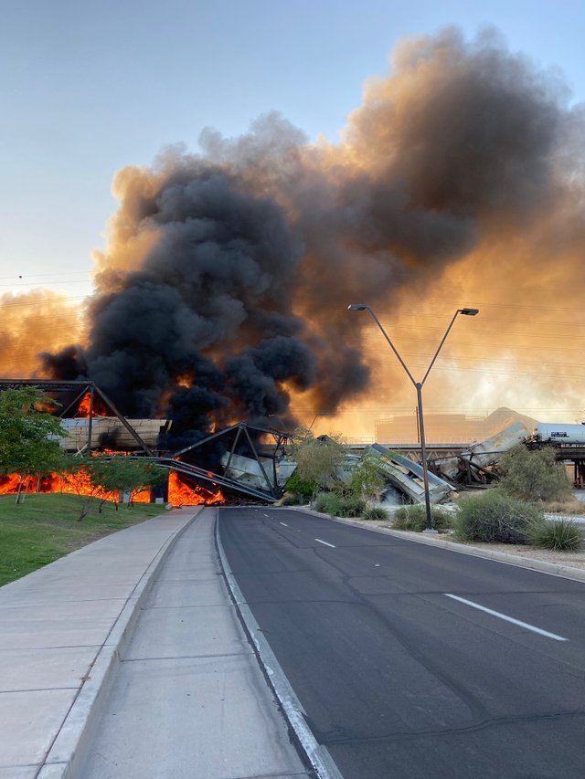 В американському штаті Аризона з рейок зійшов потяг, спалахнув і зруйнував частину мосту. Вантажний поїзд, що перевозив небезпечні речовини, спалахнув над місцевим озером Темпе-Таун.